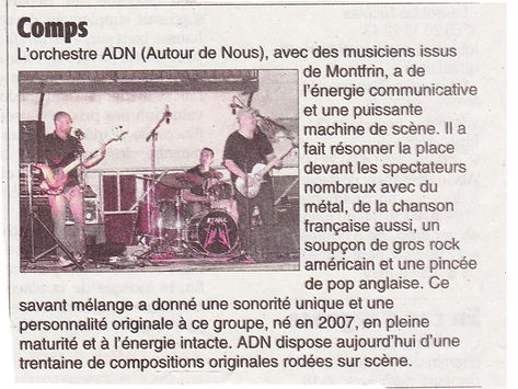Ce savant mélange a donné une sonorité unique et une personnalité originale à ce groupe en pleine maturité et à l'énergie intacte. Né en 2007, le groupe ADN dispose aujourd'hui d'une trentaine de compositions originales rodées sur scènes.